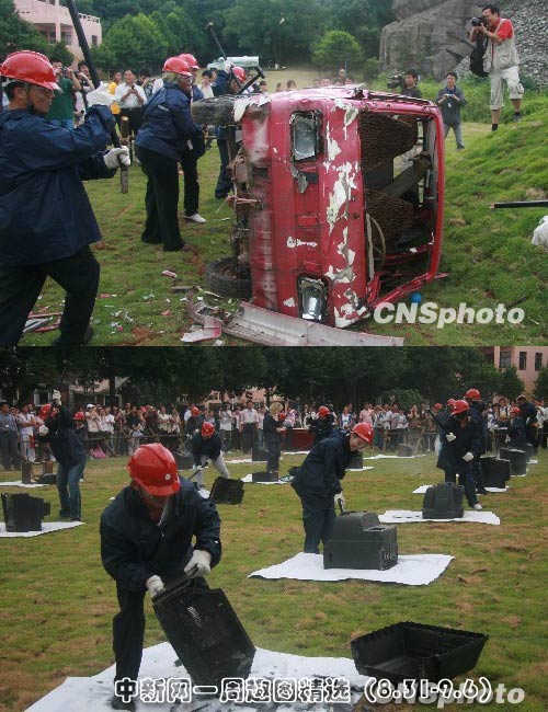9月1日,一群全副武装、手持铁锤的都市人在长沙世界之窗滑草坪上疯狂砸车,以此宣泄心中的压力。图片来源:中国新闻网
