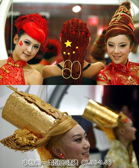 9月2日,昆明发型设计师们推出多款“国庆”发型,将黄色五角星、红旗等元素应用在多款不同的发型上,每一款发型又都独具特色。图片来源:CFP
