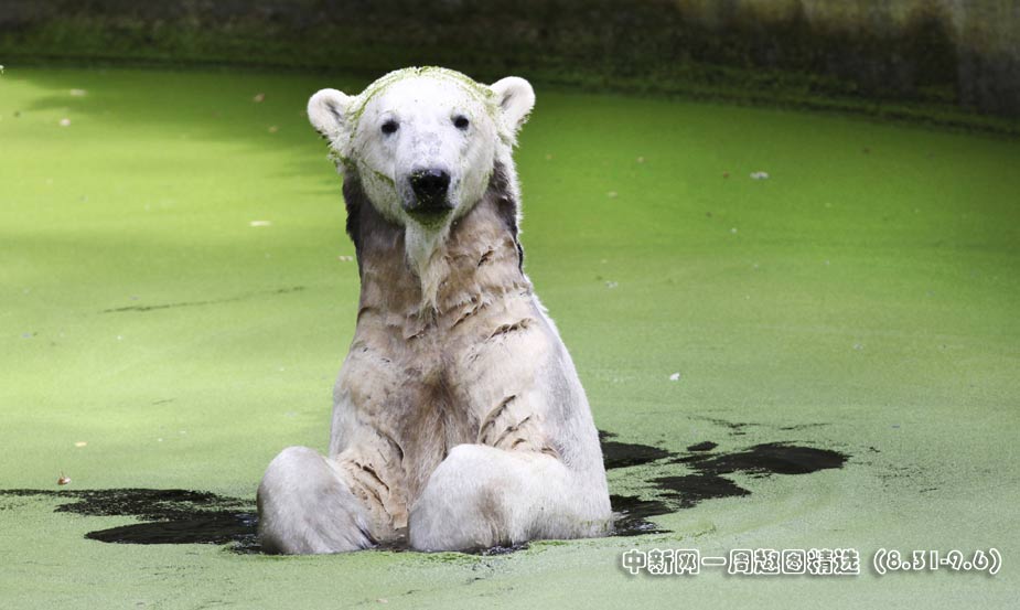 9月4日,德国柏林动物园的明星北极熊克努特正在水中“自娱自乐”。图片来源:中国新闻网