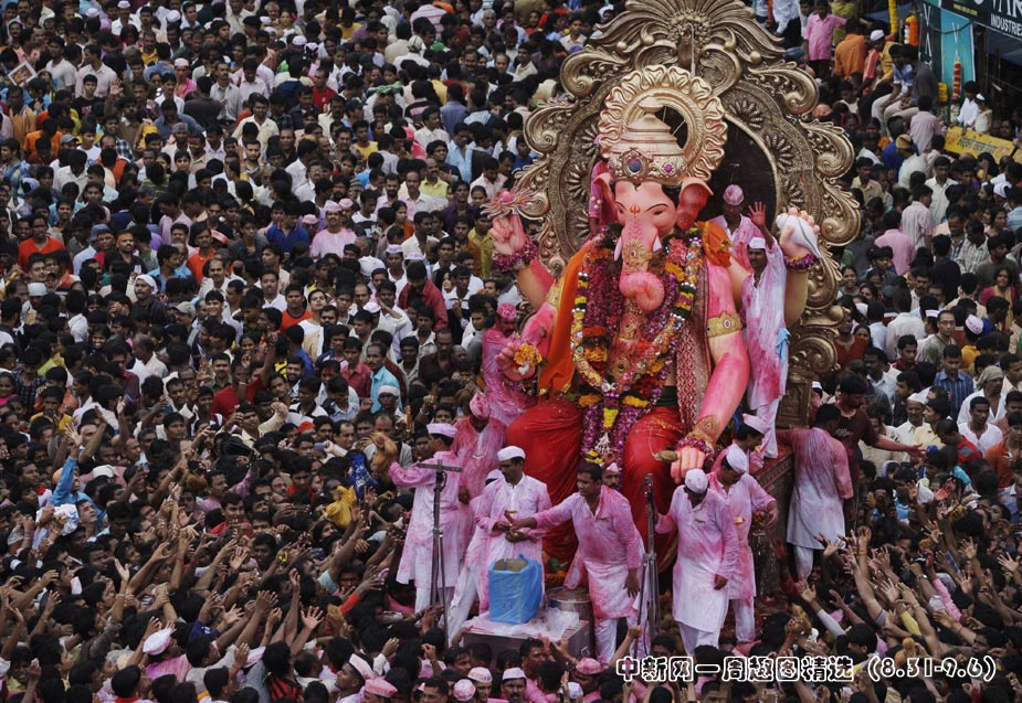 9月3日,印度各地的印度教教徒举行盛大的仪式庆祝象头神节。图片来源:中国新闻网