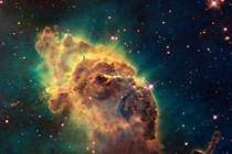 图为哈勃望远镜新安装的广角相机拍摄的斯蒂芬五重星系。斯蒂芬五重星系正如其名称所示由5个星系组成,但是最近的研究发现,画面左上方的NGC 7320星系与地球的距离比其他几个星系近7倍。