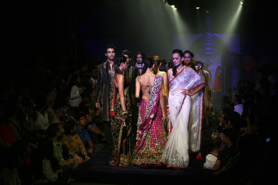 9月13日,主题名为“地球时装”的时装周在印度加尔各答开幕,时装周上模特们展示了设计师马尼什·马尔霍特拉的作品。来源:中国新闻网