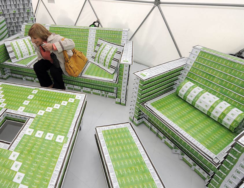 9月17日,在美国纽约,一位名叫布赖恩的设计师展示他利用房门卡设计的客房。这个占地约37平方米的酒店接待大厅、卧室和卫生间是利用20多万张房门卡搭建而成的。