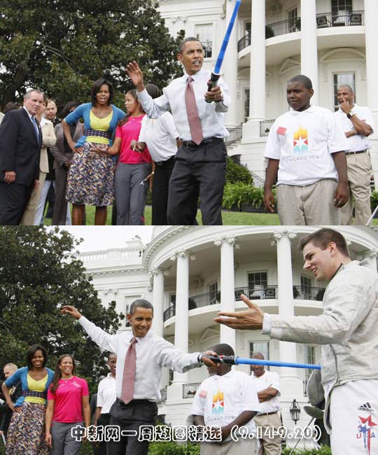9月16日,美国华盛顿白宫南草坪举行一场以支持芝加哥申办2016年夏季奥运会为主题的奥运体育项目展示活动,总统奥巴马及第一夫人米歇尔·奥巴马出席活动。图片来源:中国新闻网
