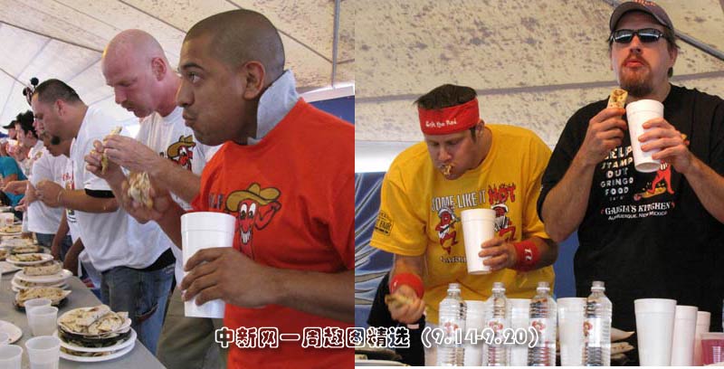 9月18日,世界吃卷饼大赛在美国新墨西哥州举行,众高手使出浑身解数,争当“大胃王”。图片来源:中国新闻网