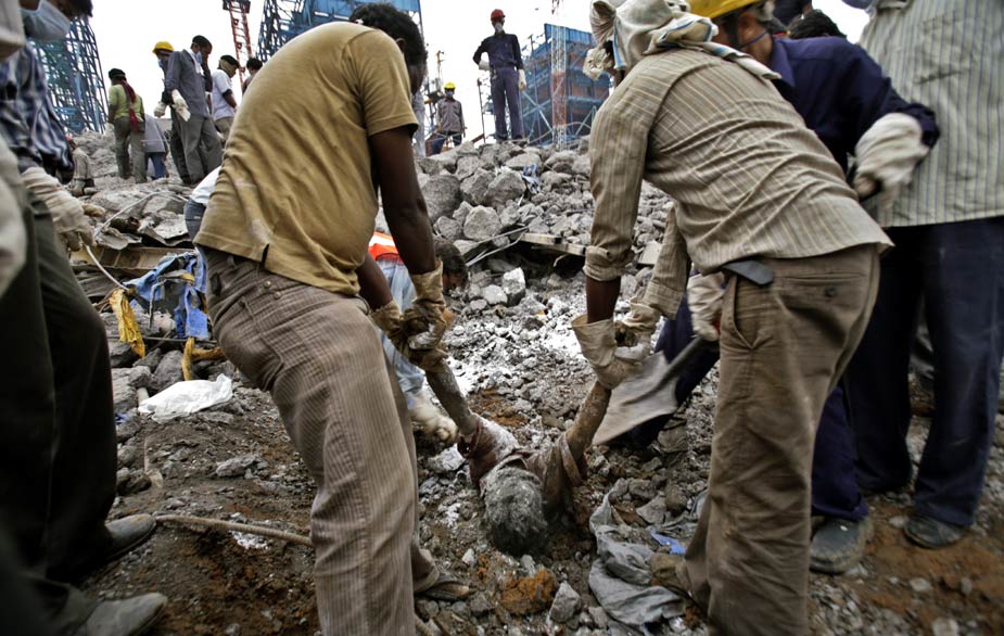 印度中部一座在建电厂的巨型烟囱23日下午发生倒塌,目前估计已有至少100人罹难。图片来源:中国新闻网