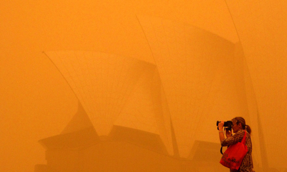 23日,包括悉尼在内的澳大利亚东部地区出现沙尘暴天气,当地交通因此受到影响。图片来源:中国新闻网