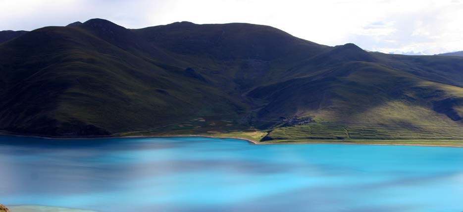 白云的影子洒在湖面上,形成了诡异的光影效果。