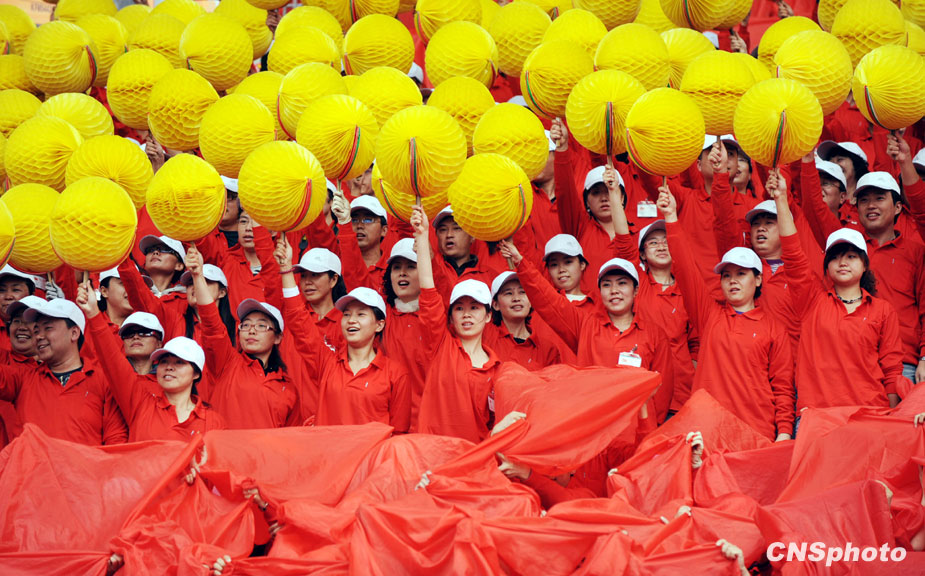 9月27日,“新中国 新沈阳”——沈阳市庆祝中华人民共和国成立60周年群众歌咏大会在沈阳市铁西体育场举行。歌咏大会上,来自各行各业的代表组成上百个观众方阵,三万市民齐唱《歌唱祖国》等耳熟能详的经典歌曲喜迎国庆。 中新社发 罗澜 摄