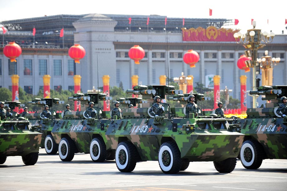国庆60周年阅兵10月1日上午在天安门广场成功举行。由人民解放军、武装警察部队和民兵预备役部队8000余名官兵组成的受阅方阵接受检阅。