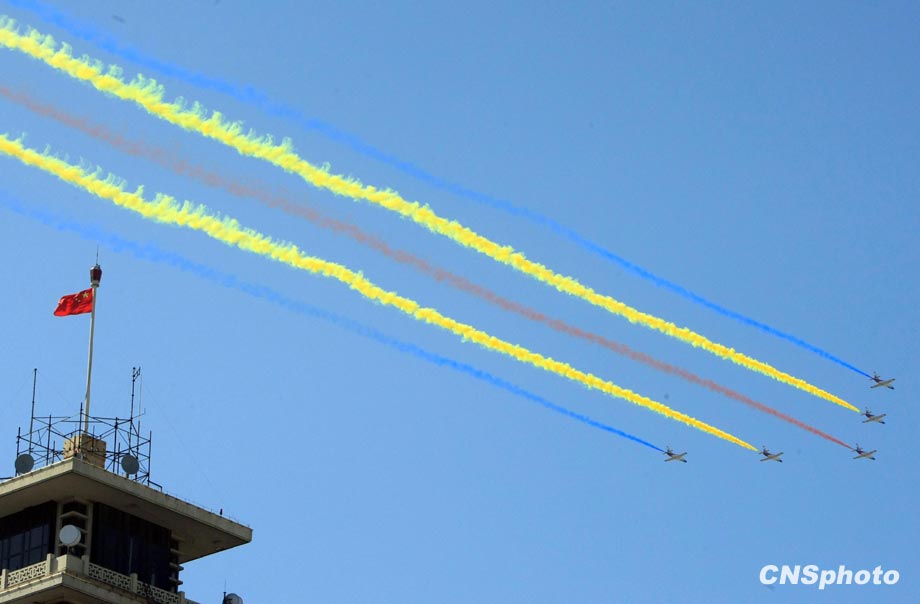 国庆60周年阅兵10月1日上午在天安门广场成功举行。由人民解放军、武装警察部队和民兵预备役部队8000余名官兵组成的受阅方阵接受检阅。中新社发 汤彦俊 摄