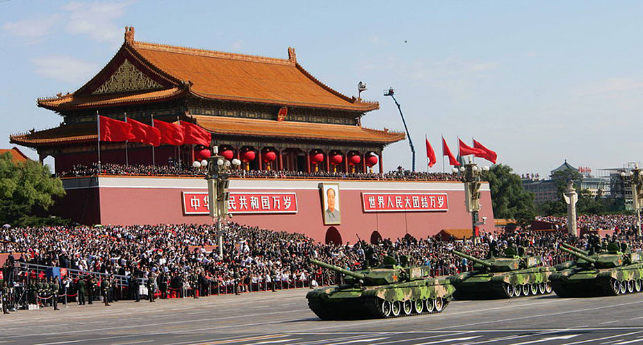 2009年10月1日,首都各界庆祝中华人民共和国成立60周年大会在北京天安门广场隆重举行。这是坦克第一方队正在通过天安门广场。