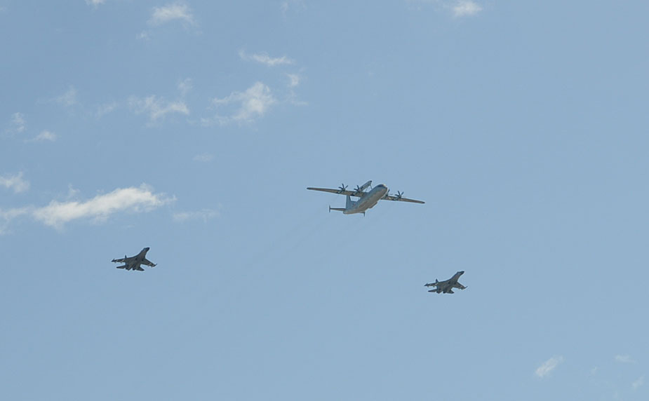 2009年10月1日,中华人民共和国成立60周年庆祝大会在北京天安门广场举行。图为预警机梯队通过天安门广场上空。中新网记者 摄