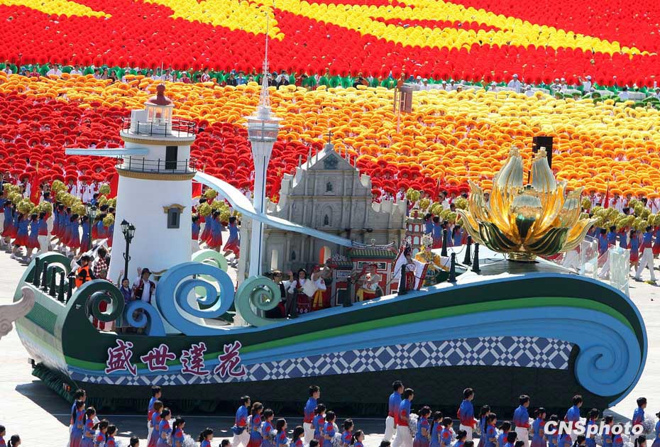 图为“澳门”彩车方阵。