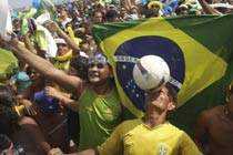 北京时间10月3日凌晨结束的2016年夏季奥运会举办城市投票中,巴西里约热内卢经过三轮投票,击败马德里、东京和芝加哥,成功获得了2016年奥运会的主办权。这将是现代奥林匹克运动自1894年首次在希腊举办之后,在一百多年的时间里首次来到南美洲大陆。图为巴西民众得知里约热内卢获得2016年奥运会主办权后,在海滩上疯狂欢庆。