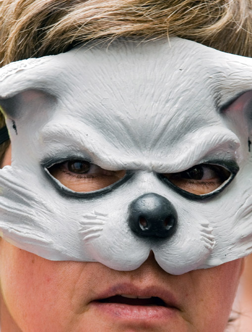 10月4日,在墨西哥首都墨西哥城,参加世界动物日活动的人们头带面具,手举图片,呼吁人们关注动物权益。来源:中国新闻网