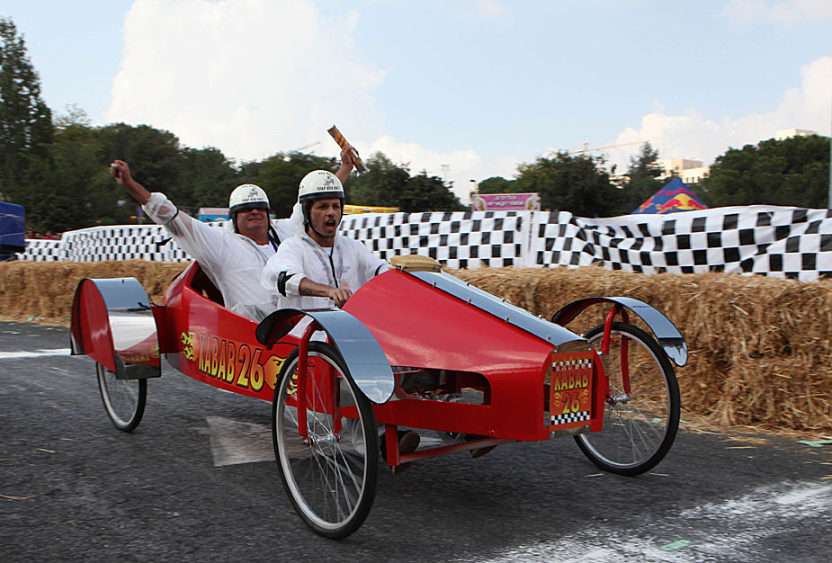 50辆“肥皂盒车”10月7日参加了耶路撒冷举行的“肥皂盒车”趣味竞赛。赛道设置在市中心一条大街的一段斜坡上,比赛者驾驶各种千奇百怪的赛车从起点一路滑下。图片来源:中国新闻网