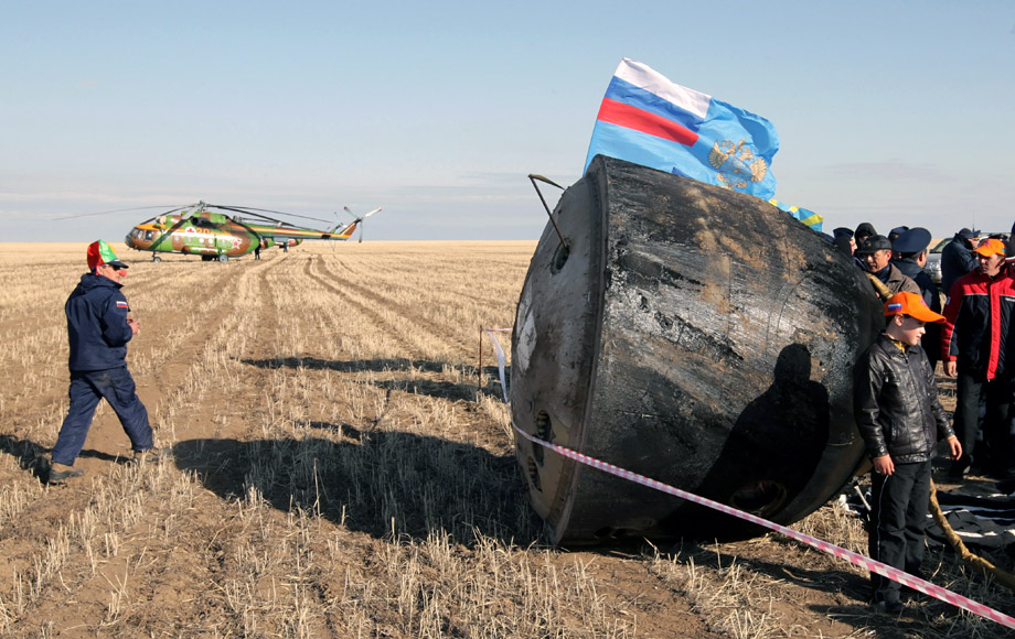 10月11日,俄罗斯“联盟TMA-14”载人飞船携加拿大太空游客盖·拉利伯特及两名宇航员一起返回地球,成功在哈萨克斯坦着陆。来源:中国新闻网