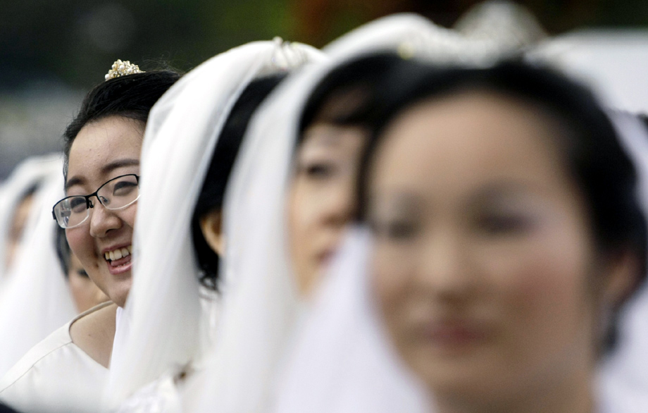 周三(10月14日),来自世界各地约4万人在韩国汉城以南的日月潭大学参加集体婚礼,并成为韩国10年来规模最大的集体婚礼。图片来源:中国新闻网