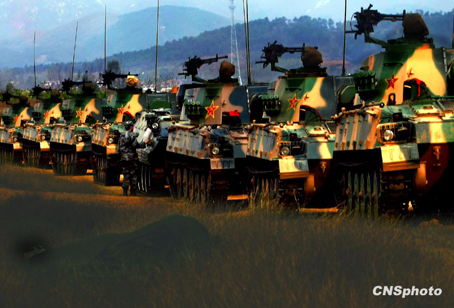 解放军济南军区“前锋-2009A”军事演习,将于10月21日在某合同战术训练基地举行,参加演习部队10月20日组织战前动员。这次演习主要是由兵力兵器数量规模向信息火力效能聚优转变、指挥的重心由主攻方向上的重点突破向作战关节要害的体系毁瘫转变、火力的运用由概略粗放决策向科学精细筹划转变、协同的重点由地面步坦行动向陆空火力协调转变、行动的控制由时间位置推进量向效果态势达成度转变、作战的目的由歼敌夺地向控要制权转变。 中新社发 宋吉河 摄