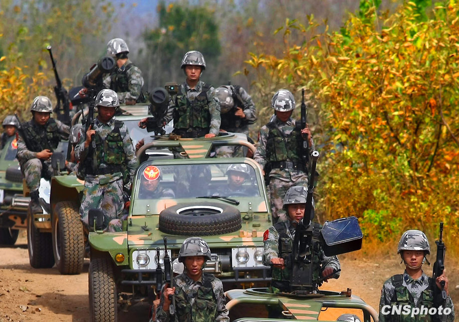 解放军济南军区“前锋-2009A”军事演习,将于10月21日在某合同战术训练基地举行,图为即将参加演习的空降兵部队10月20日在进行针对性训练。这次演习主要是由兵力兵器数量规模向信息火力效能聚优转变、指挥的重心由主攻方向上的重点突破向作战关节要害的体系毁瘫转变、火力的运用由概略粗放决策向科学精细筹划转变、协同的重点由地面步坦行动向陆空火力协调转变、行动的控制由时间位置推进量向效果态势达成度转变、作战的目的由歼敌夺地向控要制权转变。 中新社发 宋吉河 摄