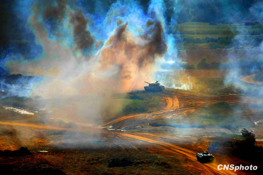 解放军“前锋-二00九A”演习,二十二日在济南军区某合同战术训练基地进行陆空联合火力打击实兵实弹演练。中新社发 宋吉河 摄