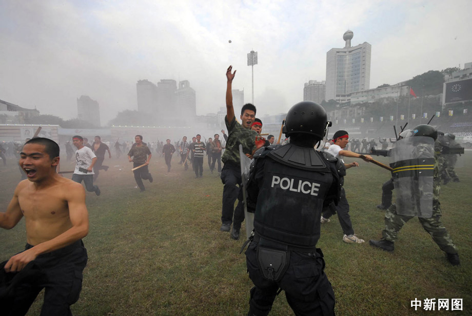 23日,推进“平安重庆”建设突发事件应急演练在该市渝中区大田湾体育场举行,重庆各警种突精锐力量重装登场,将各类事件一一化解。