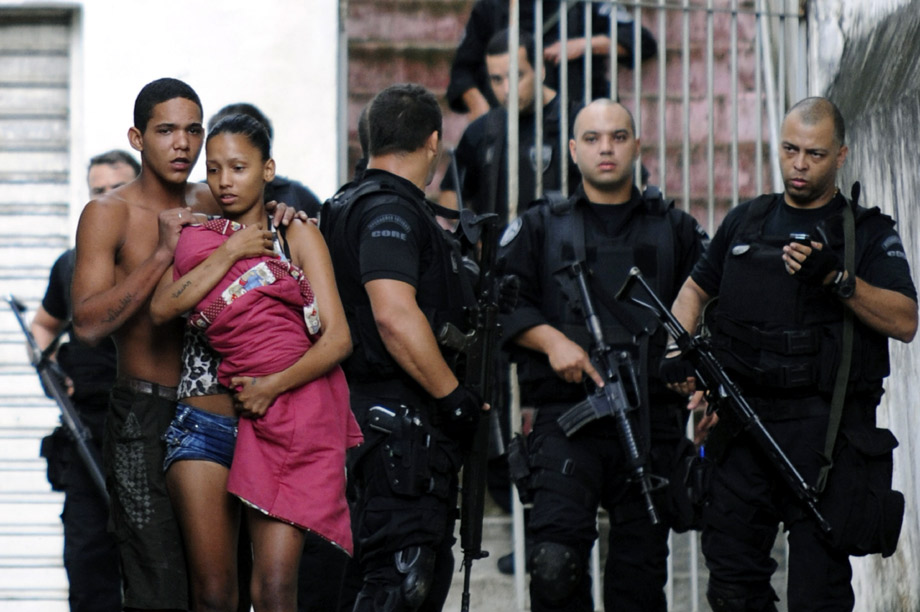 周日《巴西里约热内卢警方与贩毒团伙展开激战。这场冲突已经造成十二人死亡,多人受伤。一架警方直升机还在激战中被击落。目击者称,冲突现场枪声十分激烈。来源:中国新闻网