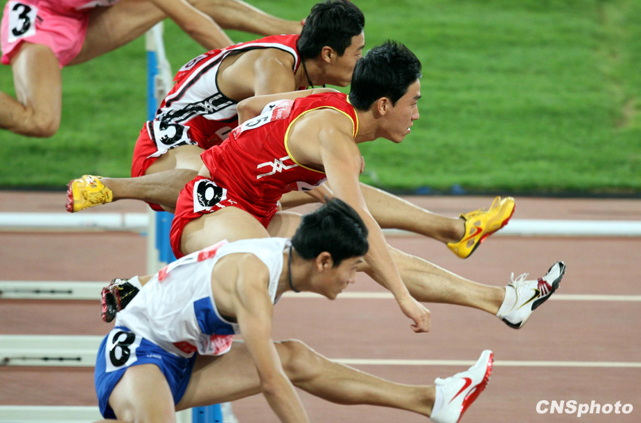 10月24日晚,全运会110米栏预赛在济南奥体中心举行,“飞人”刘翔以13秒75成绩轻松晋级决赛。来源:中国新闻网