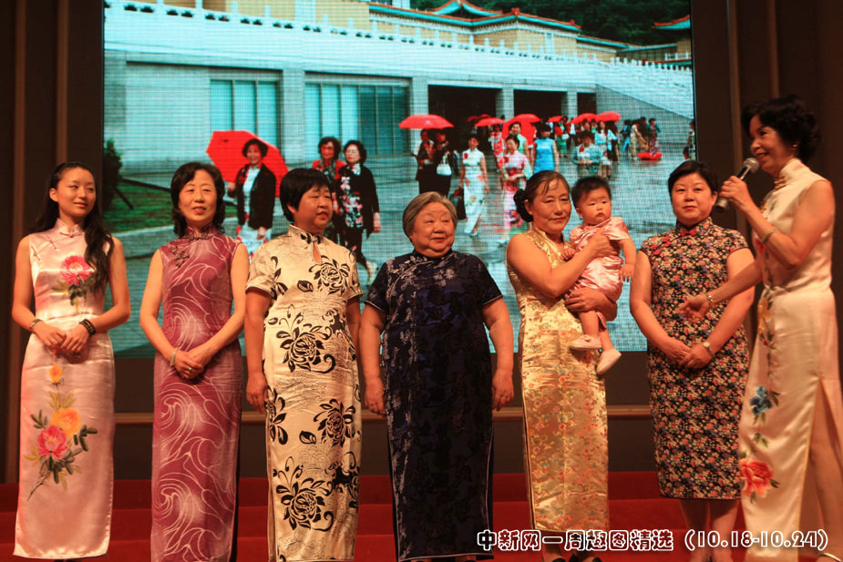 10月22日,上海一家庭七位女性,四代同堂登台演绎旗袍魅力,其中包括一岁女孩和七十七岁阿婆,成为当日《旗袍,向世博走来》大型汇报演示中最引人注目的一幕。中新社发 潘索菲 摄 >>点击观看详细内容