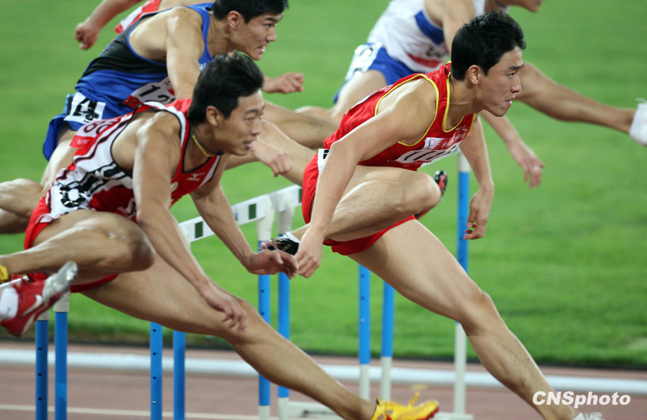 10月25日,在全运会田径男子110米栏决赛中,上海代表团选手、“中国飞人”刘翔以13秒34的成绩勇夺冠军,同时也成就了其全运会该项目三连冠的伟业。