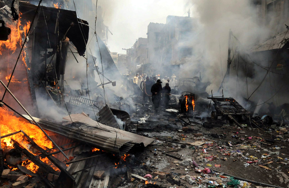 10月28日,巴基斯坦西北部城市白沙瓦一个人口密集的集市遭汽车炸弹袭击。图片来源:中国新闻网