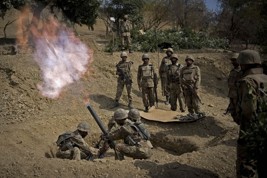 10月29日,巴基斯坦军方称在过去24小时内,巴安全部队在南瓦济里斯坦部落地区继续向塔利班“老巢”挺进,共打死11名塔利班武装分子。图为巴基斯坦安全部队向塔利班“老巢”开火。
