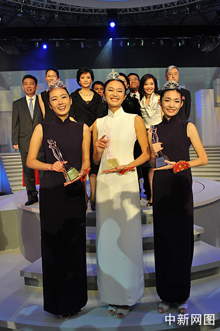 10月31日晚,“2009中华小姐环球大赛”总决赛在上海国际体操中心隆重上演,最终来自北京的田桐、上海的朱盈菲和陕西的李若凝分别摘得本届大赛的冠亚季军。中新网记者 金硕 摄
