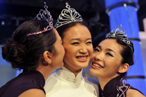10月31日晚,“2009中华小姐环球大赛”总决赛上,12名入围总决赛的佳丽身着各式服装展现曼妙身姿,此外大赛还设计了一套“废品服装”呼吁环境保护。中新网记者 金硕 摄