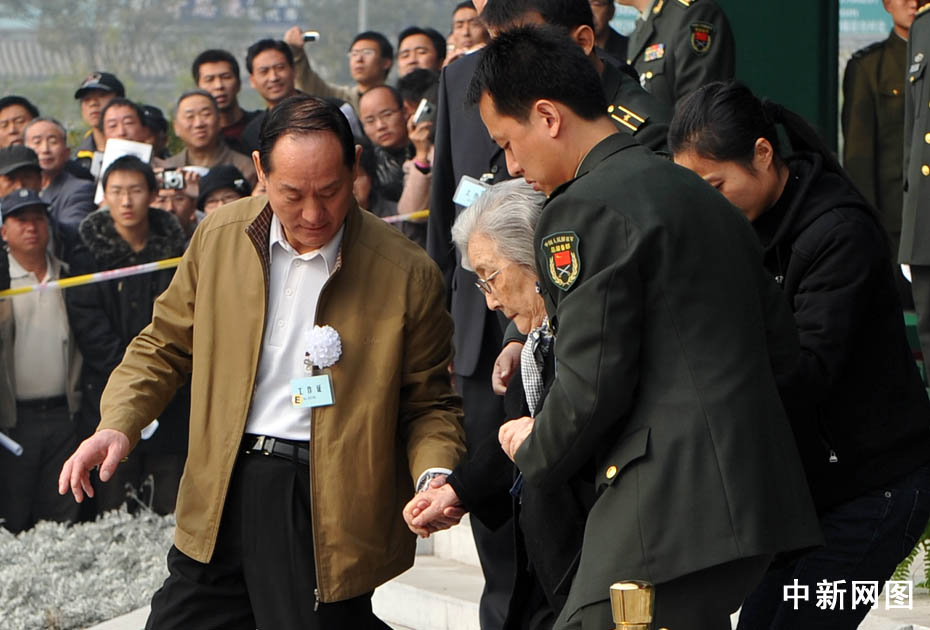 11月6日,“中国航天之父”钱学森的追悼会在北京八宝山举行。图为钱学森夫人蒋英送别丈夫。中新网记者 金硕 摄