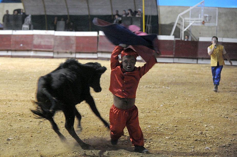 近日,哥伦比亚上演了一场精彩的“侏儒斗牛”。这些侏儒和小丑来自墨西哥一个马戏团,他们每年都会在美国等地进行演出。图片来源:中国新闻网