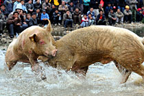 罕见“斗猪”比赛