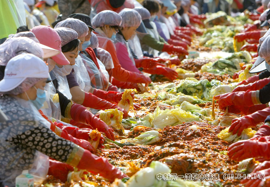 11月9日,约2700名韩国志愿者在首尔一所学校的操场上制作泡菜。>>点击观看详细内容