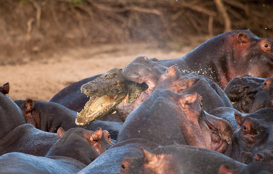 蠢鳄鱼混入河马群 引众怒被活活咬死