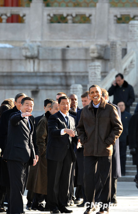 11月17日,正在中国进行国事访问的美国总统奥巴马一行参观北京故宫。图片来源:中国新闻网