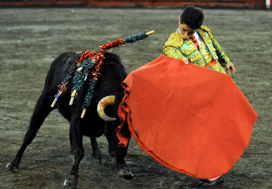 近日,哥伦比亚的一位13岁的小斗牛士在哥伦比亚的丰碑竞技场参加斗牛大赛。图片来源:中国新闻网