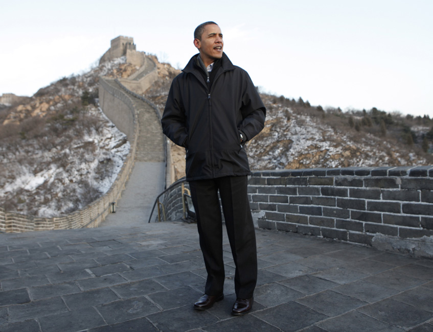 11月18日下午,美国总统奥巴马抵达北京八达岭,游览长城风光。