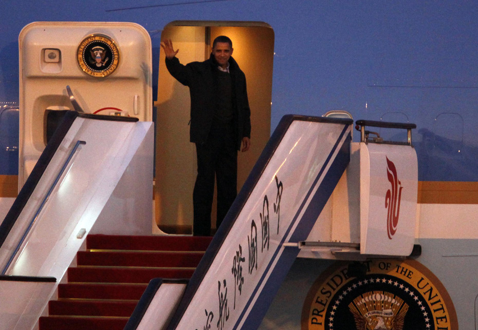 11月18日,北京首都国际机场,美国总统奥巴马结束访华行程乘坐专机离开北京。