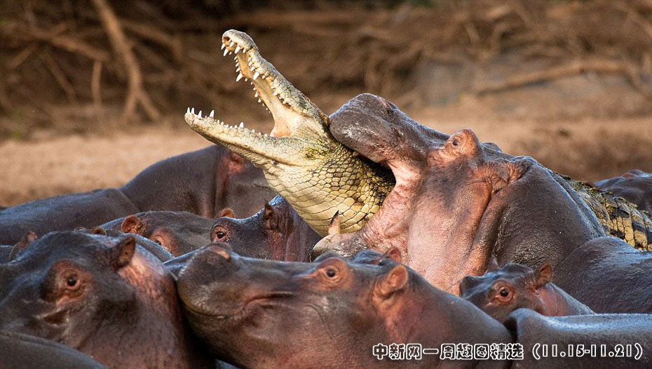 一条鳄鱼悄悄混入了正在河里洗澡的河马中,它很快就被敏感的母河马发现。愤怒的河马们立刻对它发起了猛烈地攻击,这条冒失的鳄鱼很快死于非命。图片来源:中国新闻网>>点击观看详细内容