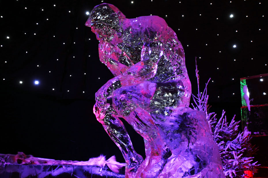 11月23日,为期一个月的“冰之魔术”艺术展在法国巴黎香榭丽舍开幕,16位艺术家利用440吨冰雕刻出精美的巴黎地标建筑和著名艺术家罗丹的“思想者”雕塑。图片来源:中国新闻网