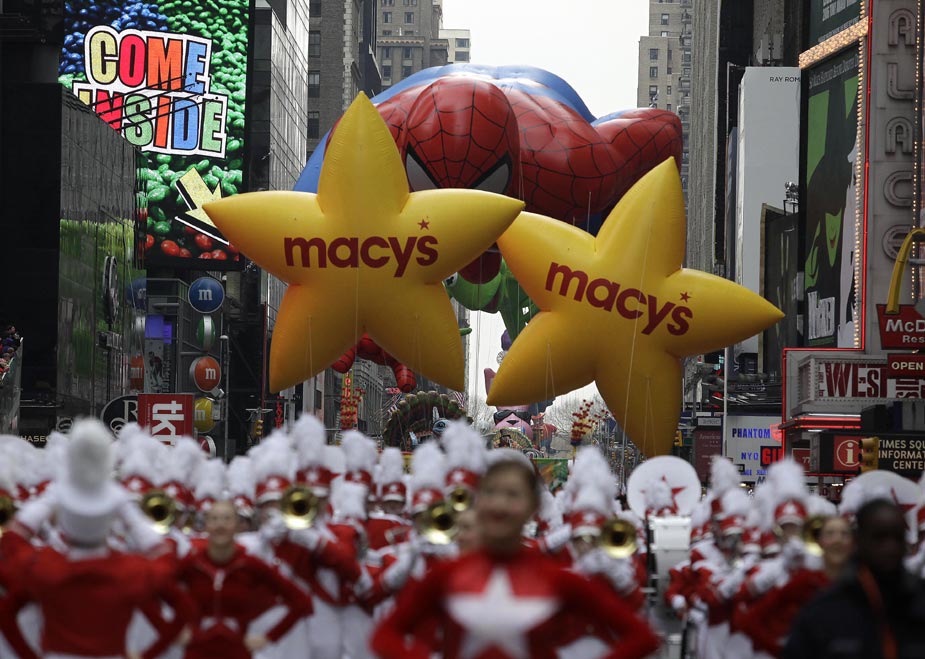 11月26日,2009梅西感恩节花车与气球大游行在纽约曼哈顿举行。梅西感恩节大游行始于1924年,是全美最盛大的感恩节庆典。图片来源:中国新闻网