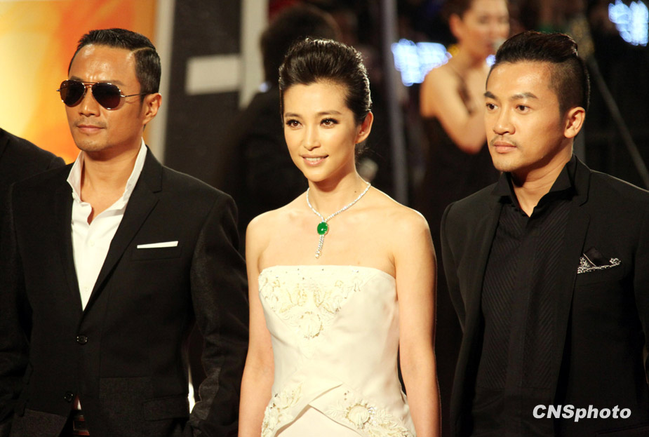 第46届台湾金马奖颁奖礼28日晚上在台北盛大举行,本次揭晓的获奖结果延续了过去三届影帝影后都落入内地和香港地区明星手上的特点,李冰冰笑到最后获封金马新科影后,而影帝之争出人意料下了“双黄蛋”,由张家辉和黄渤共同获得。图为张涵予、李冰冰、苏有朋走星光大道,出席颁奖典礼。中新社发 黄少华 摄