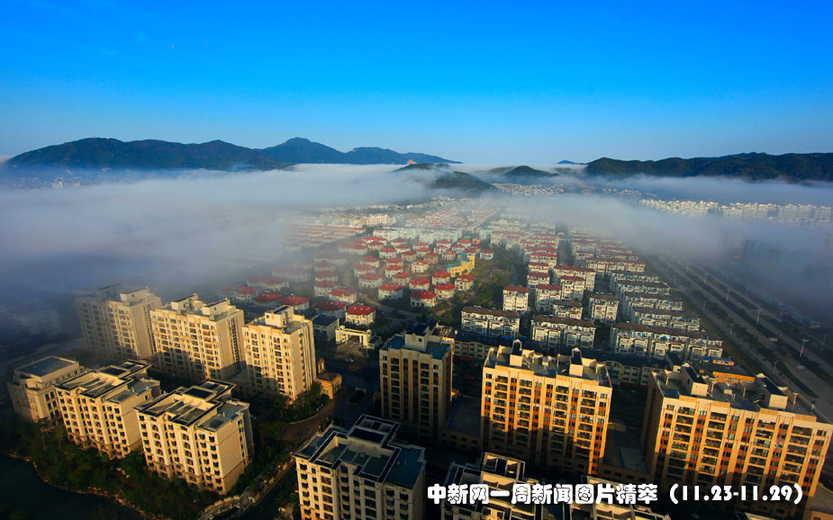 25日(周三),浙江象山半岛出现罕见的平流雾。图片来源:中国新闻网