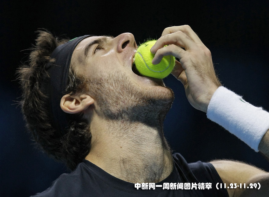 28日(周六),英国伦敦,阿根廷网球名将德尔波特罗在ATP年终总决赛半决赛中击败对手索德林晋级决赛。图片来源:中国新闻网
